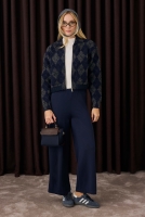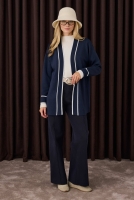 Şerit Detaylı Hırka Ofis Lacivert-Ekru