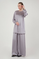 Ürünü az önce teslim aldım. Rengi çok güzel bana yakıştı, kumaşı çok harika diyemem görünüşü iyi, fakat ip çekmeleri kolayca olabilecek bir kumaş hatta üstte bir yerde bir tane çekilmiş ip var yıldız kırma sebebi de bu zaten. Ben L beden giyerim ve kendi bedenimi aldım, güzel oldu ama bir beden küçük de alınabilirdi yine ölçülere bakıp yanılmışım. Kendi bedeni aldığım için asla kötü durmadı sadece üst kısmı kuşaklı daha güzel duruyor geniş olduğu için. Ben evde giymek için aldım misafirliğe gittiğimde de rahat edebilmek için hem güzel hem şık bir takım. Geçen sene almadım fakat iyi ki şimdi aldım bende çok güzel durdu. Boyum 170 ve pantolon uzun biraz yani yüksek bel olarak giyince güzel oluyor.Görünüşü çok güzel bir takım. Teşekkürler.