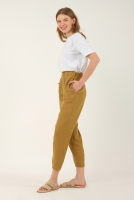 Müslin Beli Büzgülü Elbise Yağ Yeşili