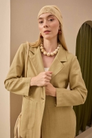 Güpürlü Keten Etekli Takım Açık Adaçayı
