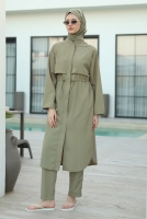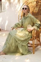 Çok Katlı Yakası Bağcıklı Elbise Açık Olive