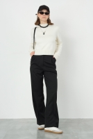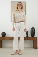 Önü Yarım Nervürlü Pantolon Ekru