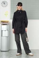 Pile Detaylı Gömlek Siyah
