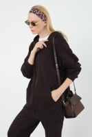 Etek Ucu Oval Sweatshirt Üç İplik Koyu Kahve